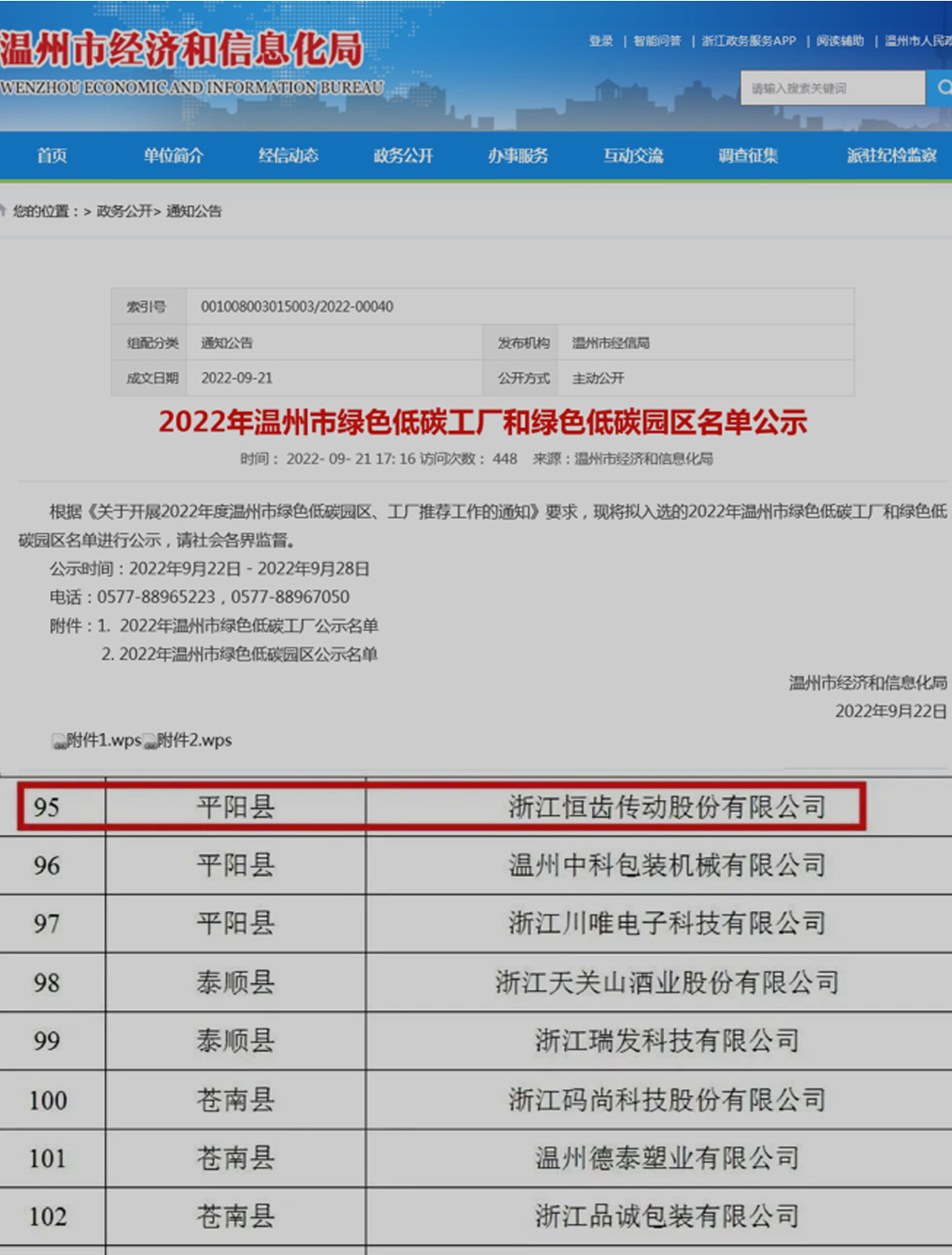 2022年12月19日,溫州市經(jīng)濟(jì)和信息化局發(fā)布了關(guān)于2022年度創(chuàng)新型中小企業(yè)的名單公示,浙江恒齒傳動(dòng)股份有限公司名列其中。