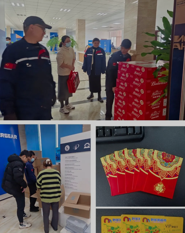 ]]>清晨公司領(lǐng)導(dǎo)們?cè)陂T口喜迎每位上班的女神并發(fā)放了進(jìn)口的家用清禮盒,我們的女神們笑得像花兒一樣美麗。